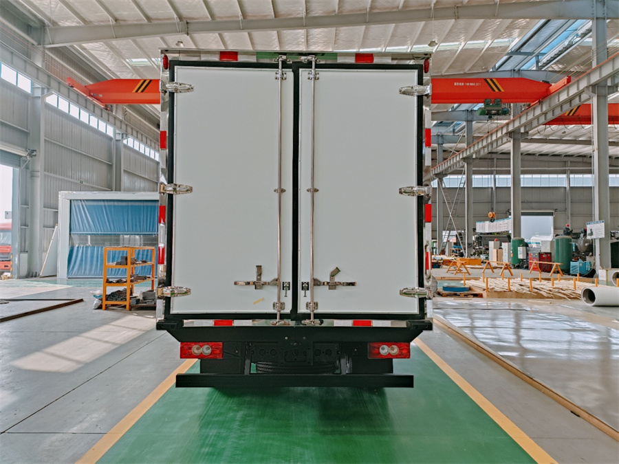 廂體底部為塑鋼花紋板,廂內(nèi)側(cè)面帶圍裙,前部排水孔,門邊條采用防雨設(shè)計(jì)和迷宮式橡膠密封條,鋁合金型材包邊,不銹鋼包角,不銹鋼門鎖,加厚型不銹鋼后門合頁(yè)及鎖件,廂體內(nèi)采用LED照明燈。